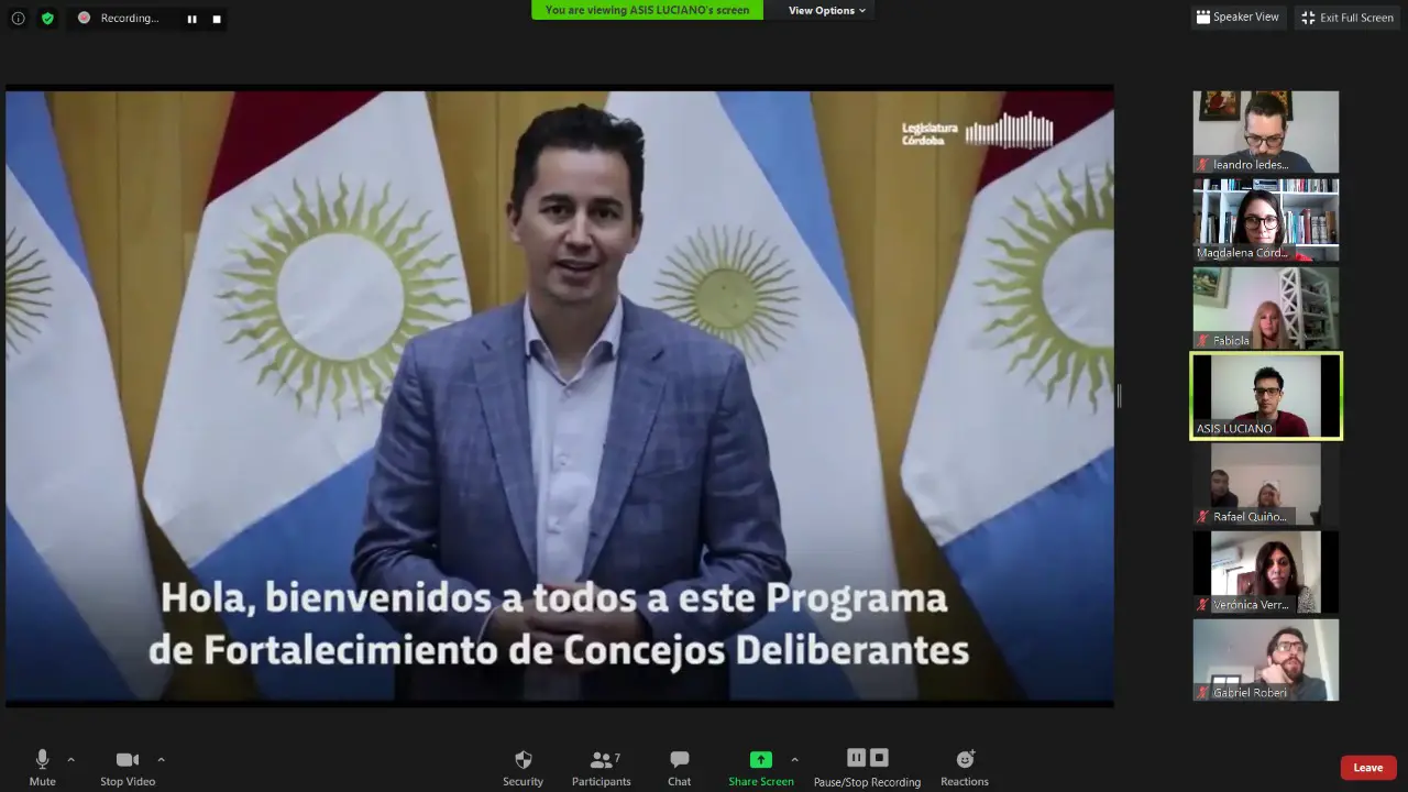 Los integrantes de los órganos deliberativos acceden a una serie de charlas breves que se dictan por medio de la plataforma Zoom. Estas abordan aspectos técnicos de interés específico para la tarea parlamentaria, fueron elaboradas por profesionales especializados y cuentan con el respaldo institucional de la Legislatura de Córdoba.