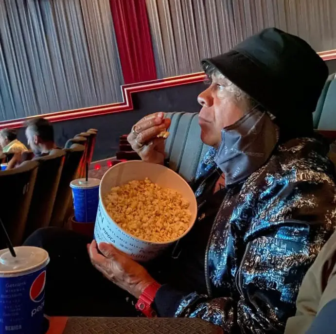 Y decidió hacer una salida recreativa con sus nietos. La elección fue el cine y la película, Matrix Resurrections.