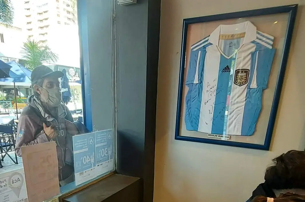 Un Ciudadano de a pié (nunca mejor dicho) no se decide a entrar. Sospecho al menos 2 (o hasta 3 razones para verlo de canuto) y solo se limita a apoyar, como en aquel mítico cafetín porteño… su ñata contra el vidrio. Ñata que está embarbijada.