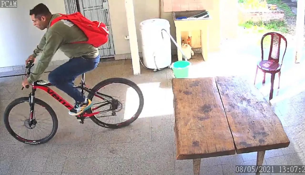 La víctima dijo que enseguida revisó la cámara de seguridad que apunta hacia la cochera, y se ve el momento exacto en el que un hombre ingresó por el portón, fue hasta el patio, buscó la bicicleta y se fue andando.
