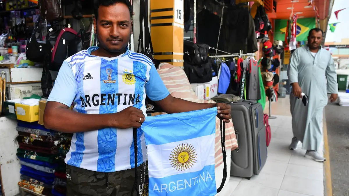 La bandera celeste y blanca cuelga en casi todos los locales de Al Attiyah, la gran feria que concentra a trabajadores inmigrantes de Asia Meridional. “¡Argentina!”, irrumpe un vendedor indio desde una casa de accesorios para celulares. Otras cuatro personas salen de su interior a pura sonrisa, retratan el momento con sus teléfonos y comparten datos sobre su pasión. “Estamos seguros que ganarán esta copa”, coinciden.