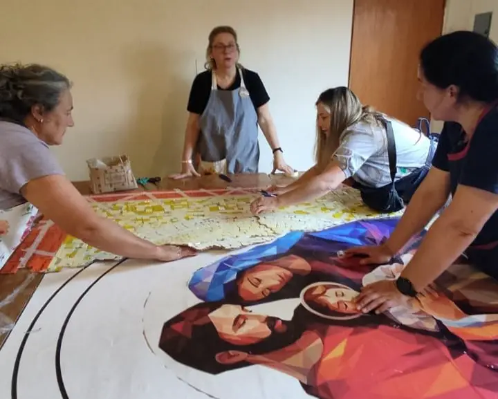 Bajo la guía del párroco Daniel Rodríguez, el proyecto fue coordinado por la profesora Soledad Orellano, dueña del Taller de Arte “Naimin”, y fue realizado por niños de catequesis, familias, profesores, estudiantes de arte en mosaico y miembros de la parroquia, en distintas etapas, fomentando el trabajo en equipo y el compromiso colectivo.