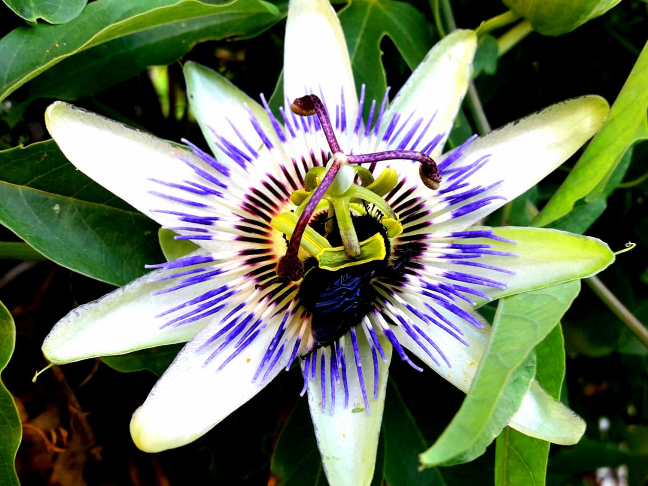 Passiflora caerulea, comúnmente llamada pasionaria o pasionaria azul, es tambien conocida como ‘Flor de la Pasión’, Maracuyá o Burucuyá.