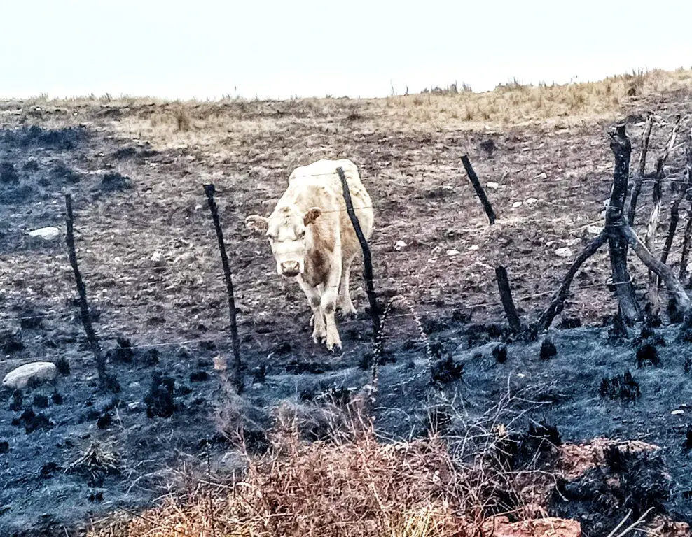Por Gustavo Oviedo. La bruma de la niebla, el frio, una ténue llovizna que el viento empuja, para golpear sobre el rostro y las manos desabrigadas. La triste mirada de una vaca blanca que contrasta con lo negro tiznado del piso, del alambrado y los postes (o lo que quedó de ellos) presentan una postal lúgubre y penosa.