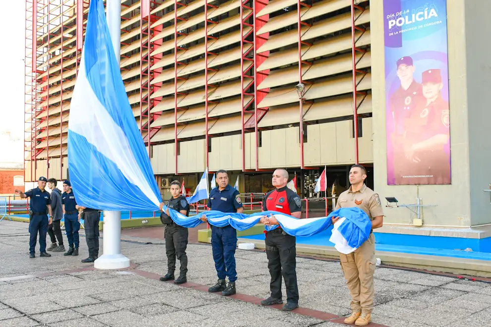 El ministro de Gobierno y Seguridad Julián López presidió el izamiento y saludo protocolar por el Día de la Policía de Córdoba en la Jefatura de Policía.