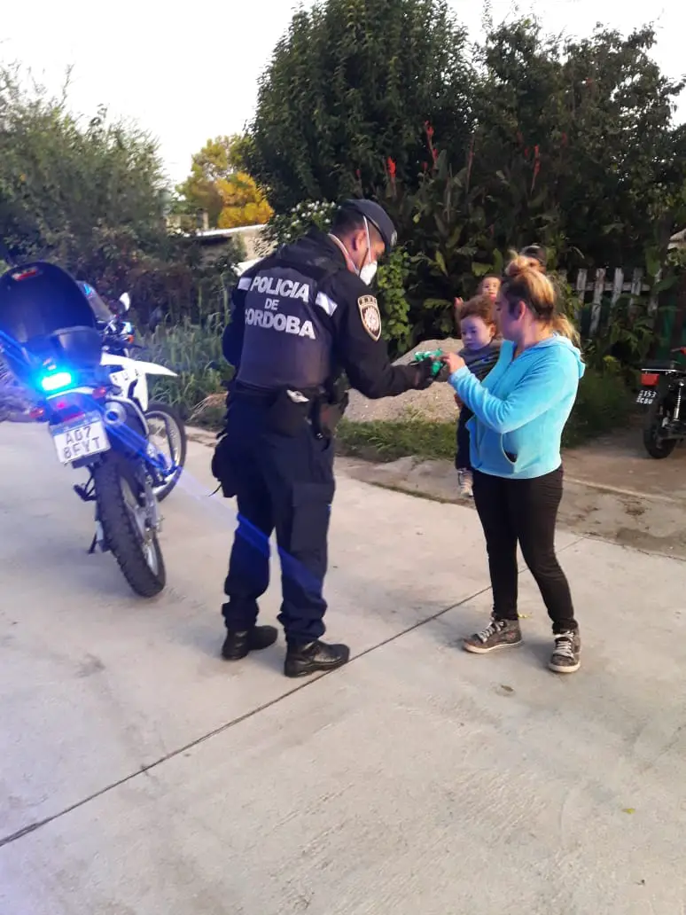 Efectivos policiales del Escuadrón Motorizado Enduro se hicieron presentes en los barrios Colinas, La Quinta Tercera y Cuarta Sección, El Canal y Miguel Muñoz B donde, con las medidas de seguridad correspondientes, repartieron alfajores de cortesía a niños, adultos y personas de la tercera edad.