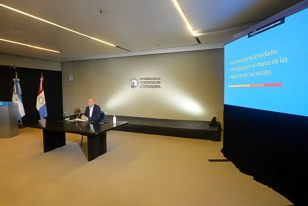 El secretario General de la Gobernación, Julio Comello, estuvo a cargo de la presentación de las medidas que están dirigidas a Personas Físicas o Jurídicas con domicilio fiscal en la provincia de Córdoba, que sean titulares de unidades económicas cuyas actividades se desarrollen en los departamentos Capital, Santa María, Punilla, Colón, Tercero Arriba y General San Martín.