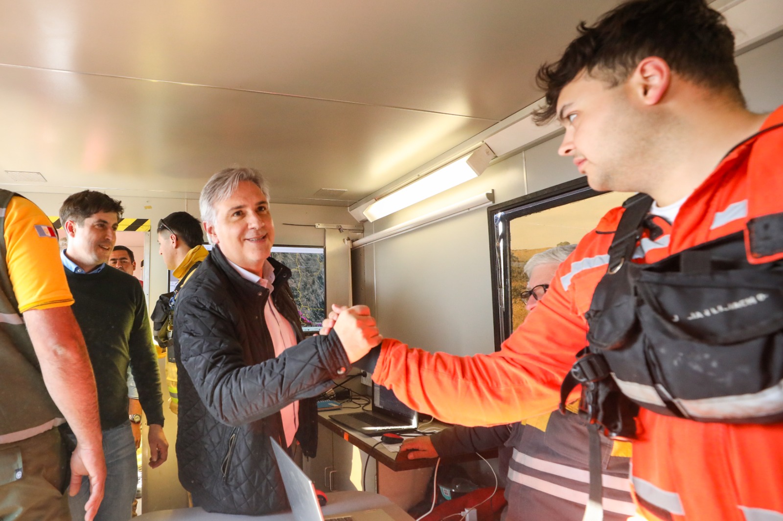 El gobernador Martín Llaryora visitó este miércoles la base operativa de Yacanto de Calamuchita, donde una dotación de bomberos realiza la guardia de cenizas