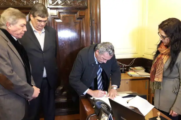 El ministro de Gobierno, Carlos Massei, el fiscal de Estado, Jorge Córdoba, y el Procurador del Tesoro, Pablo Reina, presentaron ante la Fiscalía General de la Provincia una denuncia para que se investigue la posible comisión de delito tipificado en el código Penal, artículo 211.