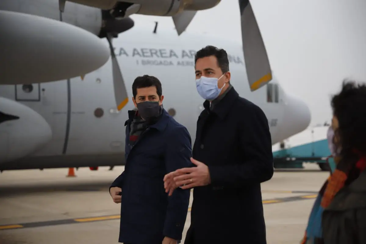 El vicegobernador, Manuel Calvo, junto al ministro de Salud provincial, Diego Cardozo, recibieron hoy en el Aeropuerto Internacional Ambrosio Taravella al ministro del Interior de la Nación, Wado de Pedro, y a la ministra de Salud nacional, Carla Vizzotti, quienes llegaron a Córdoba para hacer entrega de insumos médicos destinados a lucha contra la pandemia del coronavirus.