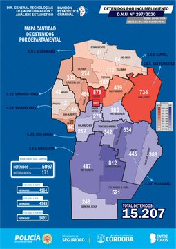 En ese sentido, la división por unidad departamental también arroja el número de 486 detenidos en todo Punilla por cometer esta infracción desde el 20 de marzo que entró en vigencia el DNU 297/2020.