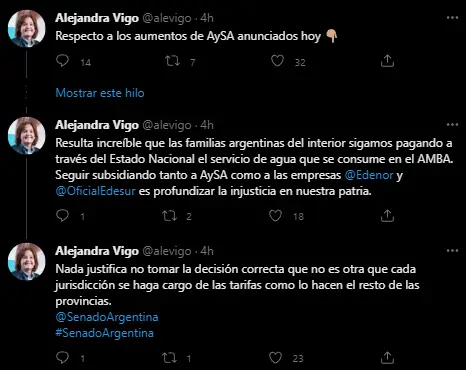 A pesar de estar con dichos sintomas, Vigo se mantuvo activa de manera remota y se manifestó en redes sociales sobre distintos temas, como lo fueron los aumentos de la empresa AySA.