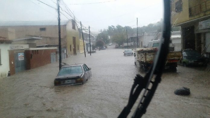 La Falda sufrió las consecuencias de un fuerte temporal este viernes por la tarde. En un corto lapso cayeron 72 milímetros provocando el anegamiento de calles.