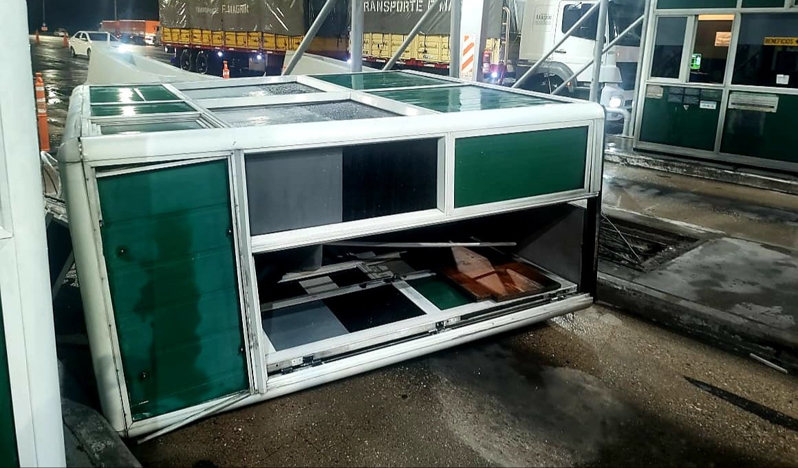 Uno de los hechos más significativos que dejó el paso del viento en la capital y sus inmediaciones, fue la voladura de una cabina en el peaje en la ruta 9 sur.