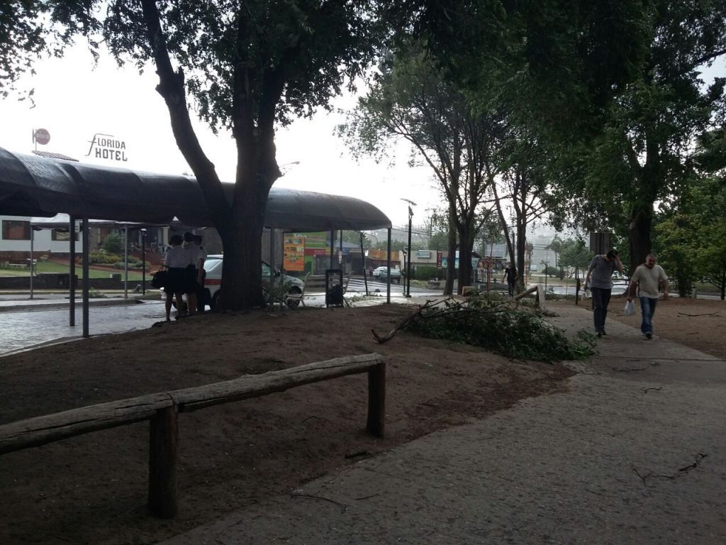 Además, se conoció a través de nuestros lectores que ramas cayeron peligrosamente en una de las veredas de la manzana de la Terminal de Ómnibus. También desde el barrio Villa Domínguez notificaron sobre la caída de un poste.