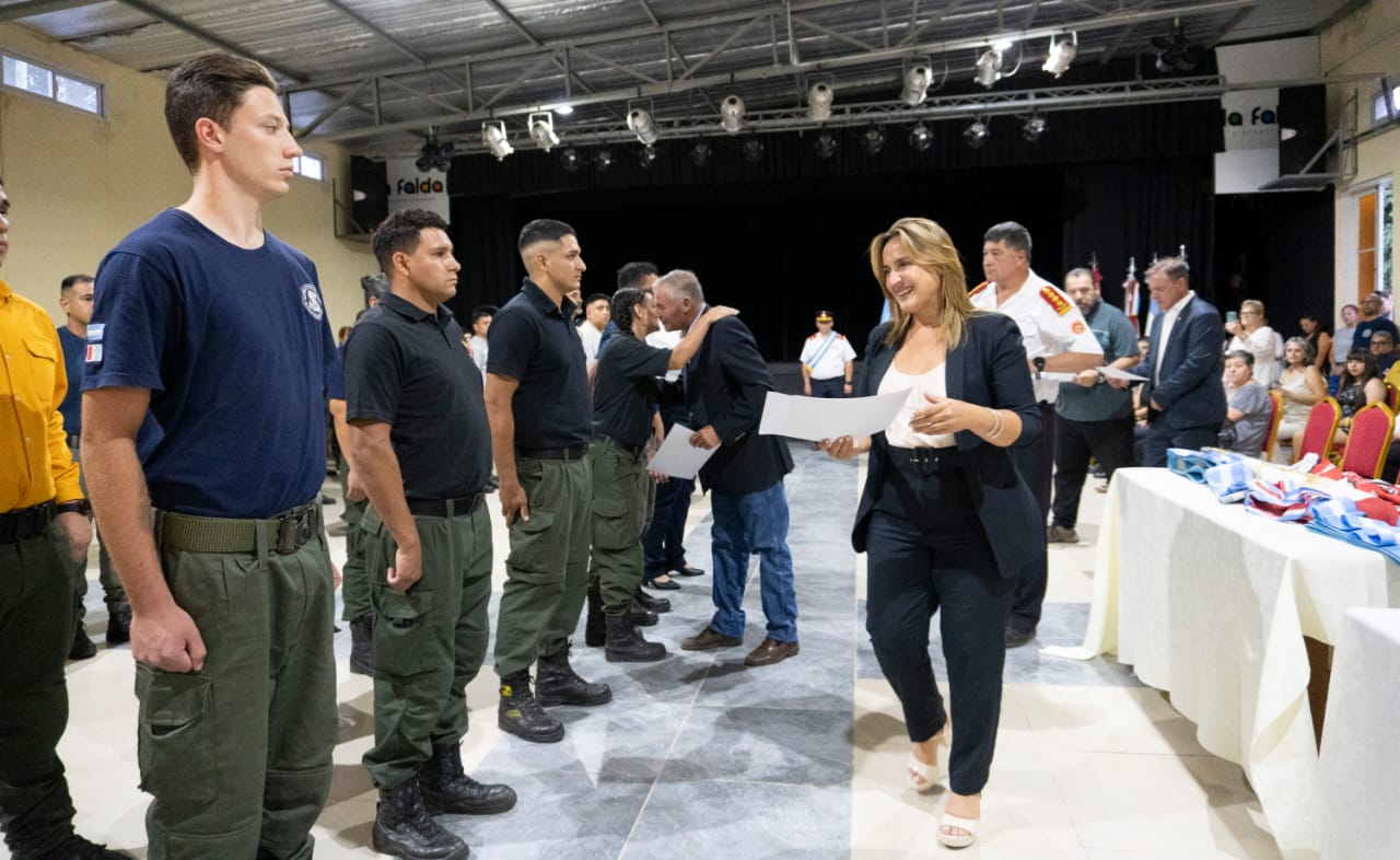 La vicegobernadora de Córdoba, Myrian Prunotto compartió en La Falda la ceremonia académica anual de la Agrupación Serrana de Asociaciones de Bomberos Voluntarios de Córdoba.