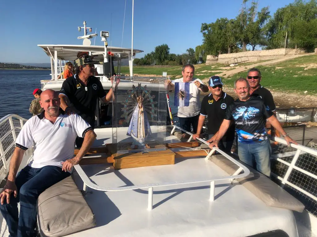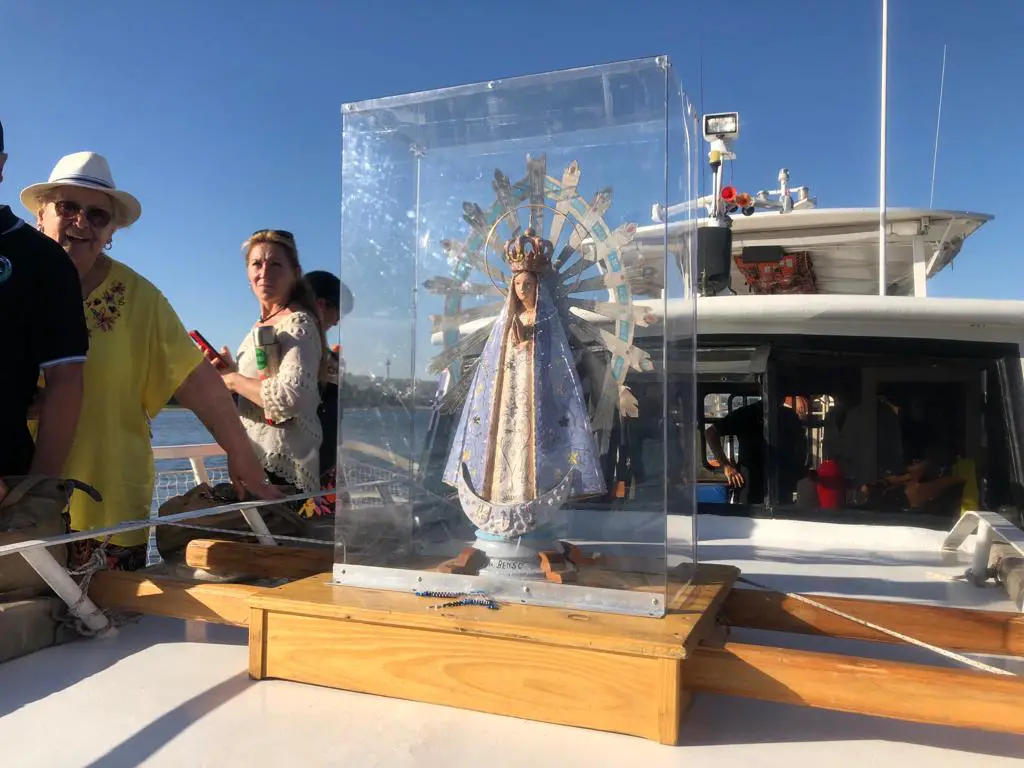 Por gestiones del Papá Francisco, se logró que los piratas de la rubia albión la devuelvan… y aquí la tenemos con Nosotros , en procesión céntrica días atras y ahora lacustre.