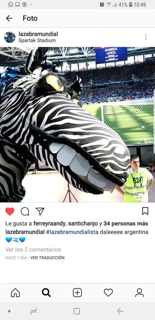 La novedad en esta oportunidad, es que la Zebra Mundialista tiene una cuenta de Instagram desde donde comparte las selfies a las que acceden los famosos. La cuenta fue inaugurada en el primer partido de Argentina en el mundial frente a Islandia en Moscú.