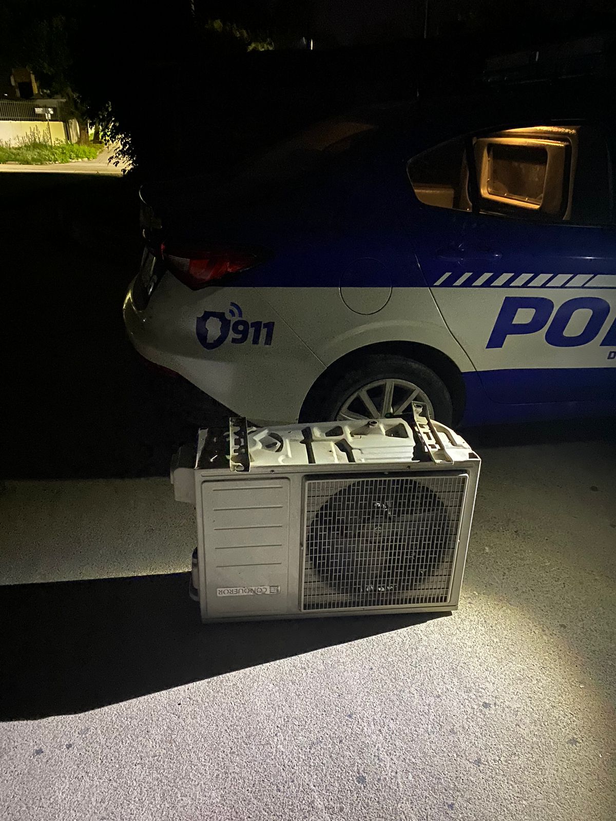 En medio de un operativo, los efectivos policiales encontraron abandonado el aire acondicionado.
