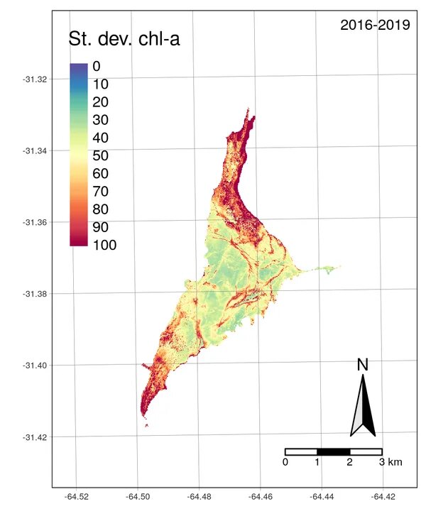 Un estudio del Instituto Gulich (UNC/Conae) analizó los patrones de distribución de la clorofila en ese reservorio entre 2016 y 2019.