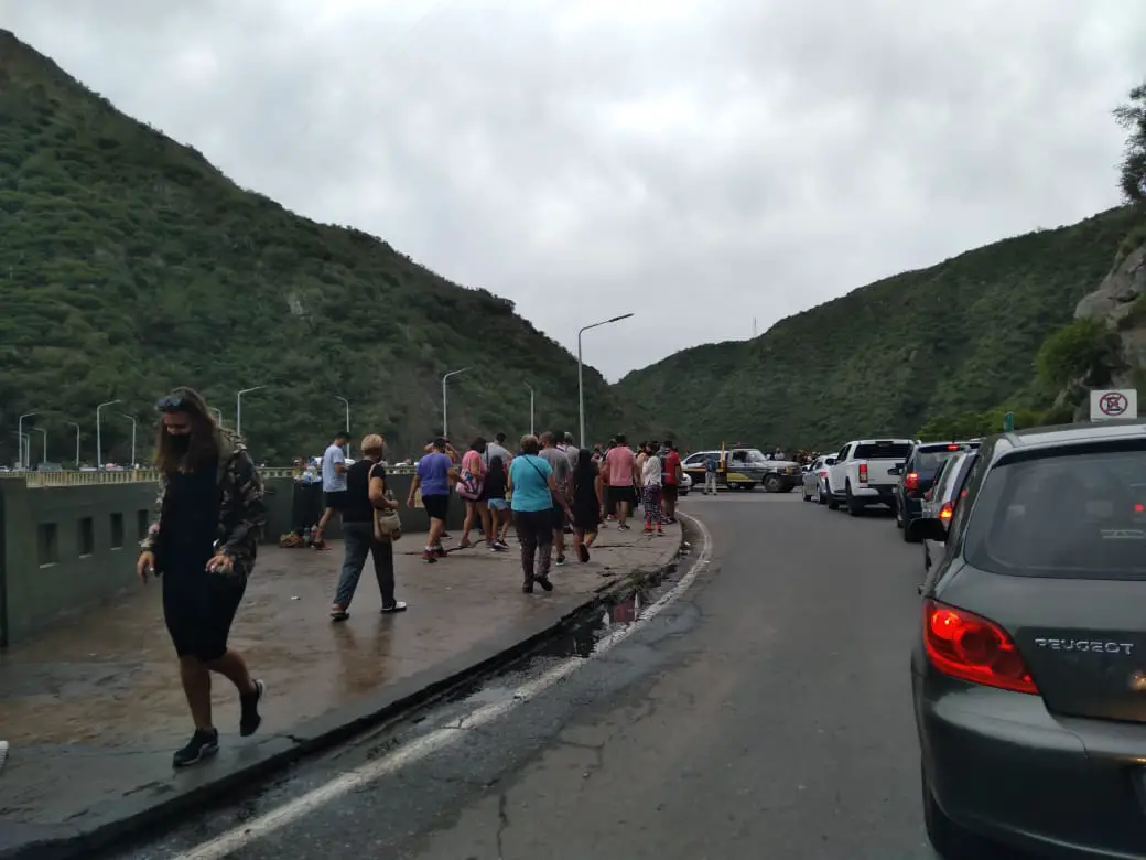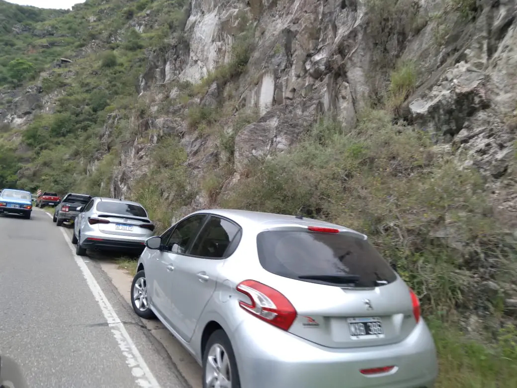 Ante la gran afluencia de turistas que llegan para observar el embudo y la “Cola de la novia”, el estacionamiento gratuito del Dique está colapsado, por lo que los conductores, con la firme intención de poder disfrutar del lugar, comenzaron a dejar sus vehículos en las banquinas, e incluso pisando parte de la ruta, lo que genera aún más demora y peligro, porque muchas personas caminan por la ruta también.