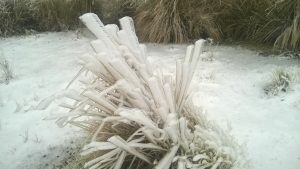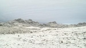 La nieve continúa presente cubriendo las Altas Cumbres este sábado luego de que comenzara a nevar el viernes por la madrugada.