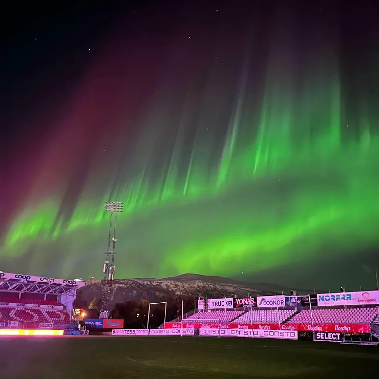 Jugar un partido de fútbol en el norte europeo puede resultar interesante, o por momentos mágico, si sobre la cancha aparecen las tan admiradas auroras boreales para darle un toque de color a la noche.
