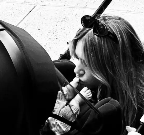 Pero este sábado, la modelo mostró imágenes en sus redes sociales de un paseo junto a su hijo, del que solo se muestra un pie.