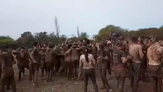 En otros lugares, como en Las Varillas, los adolescentes eligieron festejar de una manera muy particular: en un terreno lleno de barro, haciendo pogo y bailando.