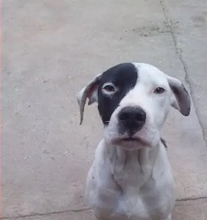 Al cachorro le habían dibujado una mancha negra en uno de sus ojos, otra en el lomo y otra en la cola con pintura.