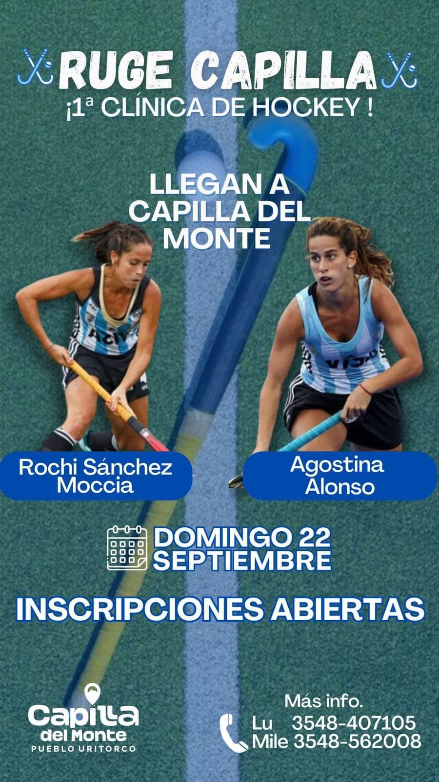 El próximo 22 de septiembre las medallistas olímpicas Rocío Sánchez Moccia y Agostina Alonso llegarán a Capilla del Monte para dictar  una Clínica de Hockey