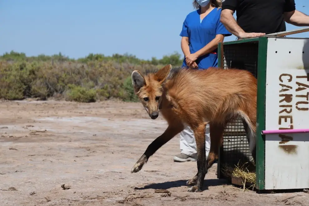 Policía Ambiental de Córdoba liberó este jueves una aguará guazú hembra en la zona rural de Villa Rosario del Saladillo, departamento Tulumba.