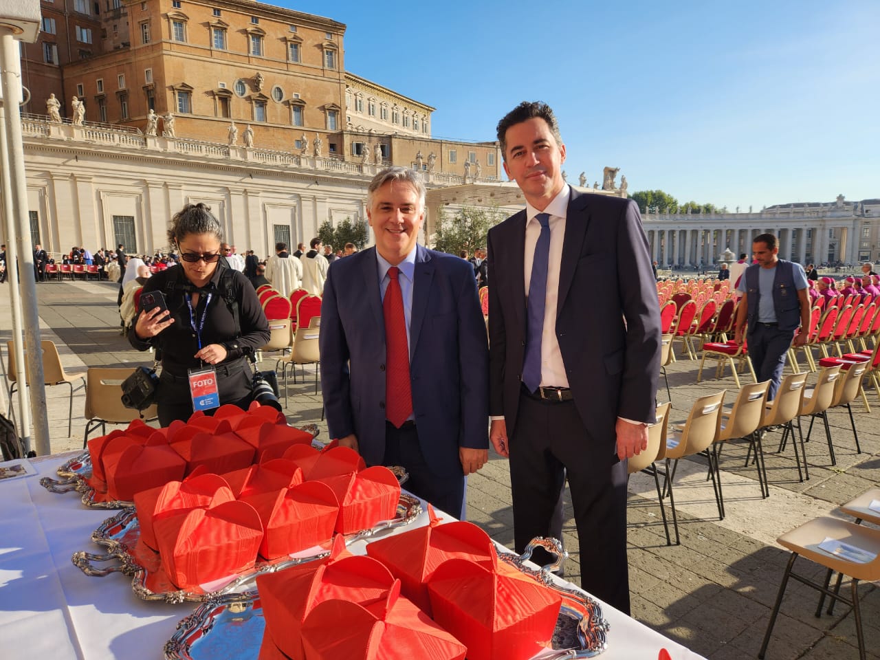 El intendente de la ciudad de Córdoba y gobernador electo, Martín Llaryora, asistió este sábado a la ceremonia en la que el Papa Francisco designó a 21 nuevos cardenales de todo el mundo, entre ellos, el arzobispo de Córdoba, Ángel Sixto Rossi.
