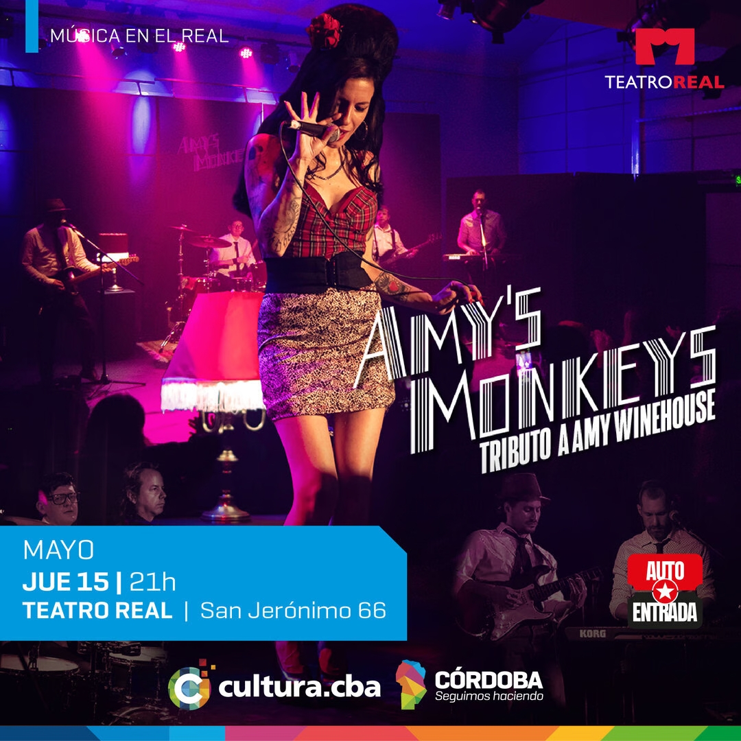 El próximo jueves 15 de mayo a las 21 horas, la Sala Carlos Giménez del Teatro Real será el escenario de un espectáculo imperdible a cargo de “Amy’s Monkeys”, una banda tributo que revive con notable fidelidad la esencia musical y estética de la icónica artista británica Amy Winehouse.