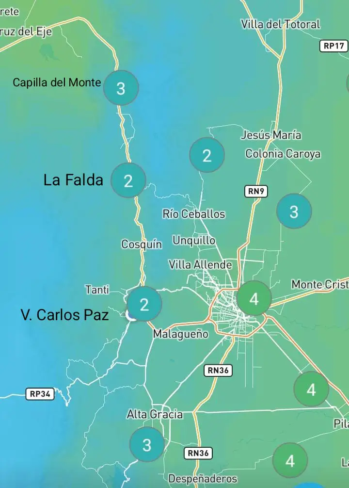 Temperaturas de este jueves en distintos puntos de Córdoba