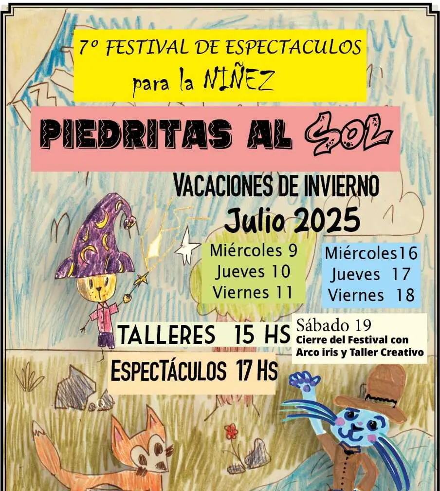 La séptima edición del Festival Piedritas al Sol, dedicado a la niñez, tendrá lugar durante las vacaciones de invierno de 2025 en Tanti, Córdoba. Este evento, que celebra el talento local, contará con la participación de artistas y talleristas de trayectoria que residen en el Valle de Punilla.