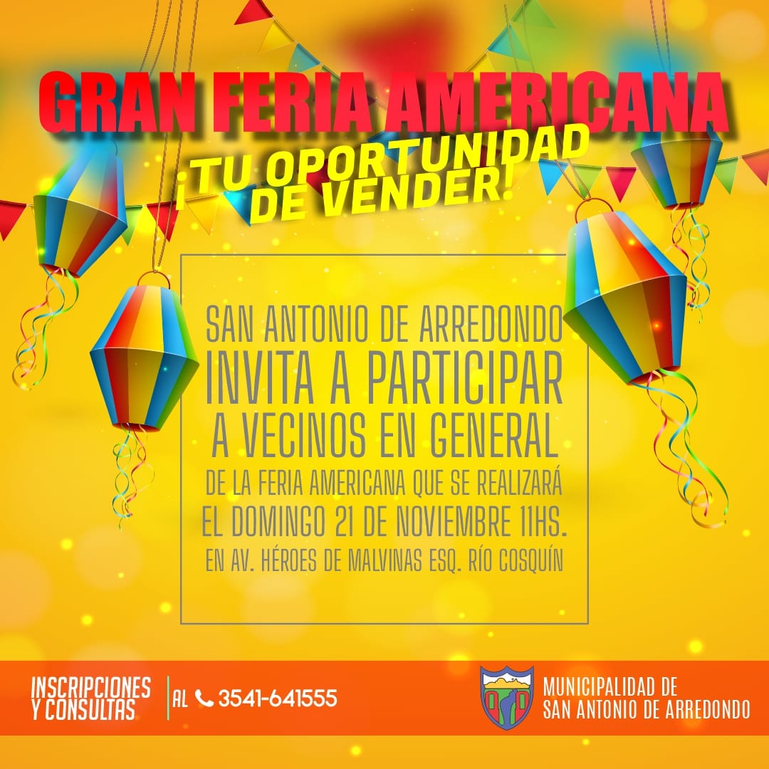 La municipalidad de San Antonio de Arredondo invita a los vecinos a participar de una gran feria americana y los convocan para ofrecer cualquier tipo de artículos en el espacio.
