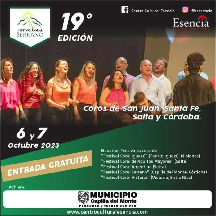 Llega este fin de semana a Capilla del Monte el Festival Coral Serrano 2023 con el fin de generar un encuentro de personas que valoran el crecimiento humano y cultural a través de la música.