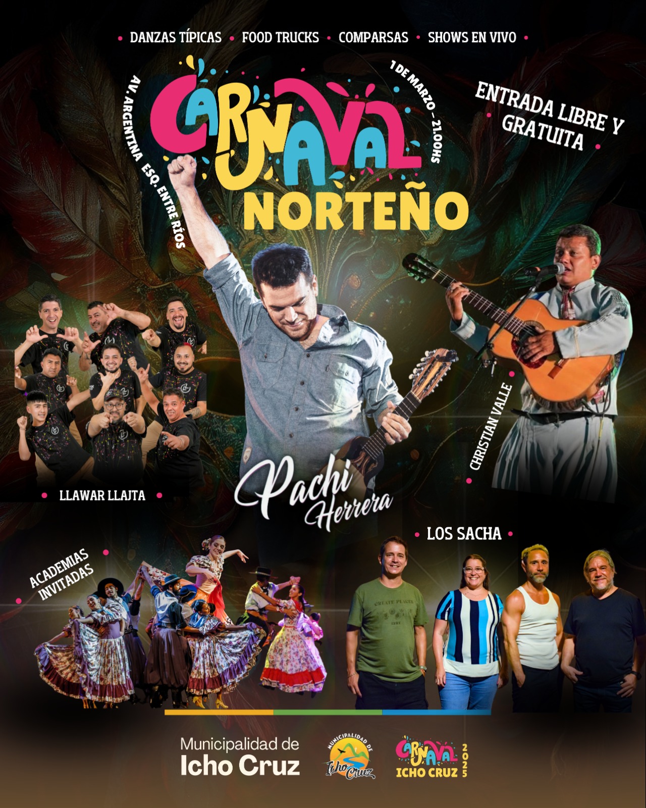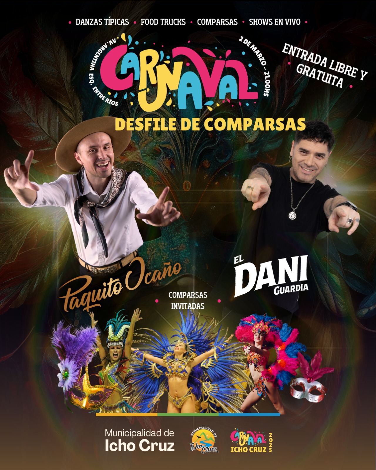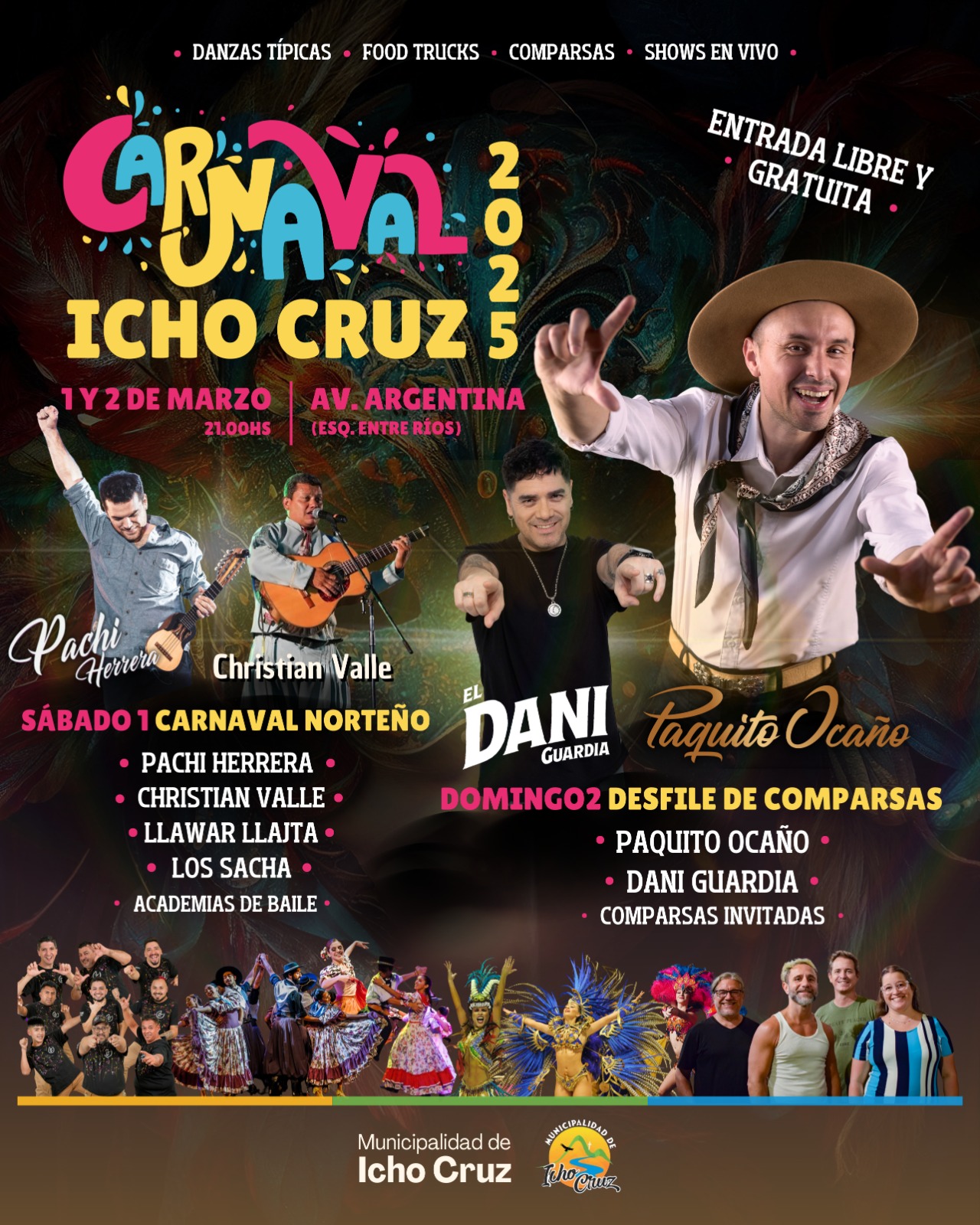 Este 1 y 2 de marzo, desde las 21, vuelve un clásico de la región con los Carnavales de Icho Cruz que se reeditarán en la avenida Argentina, y Entre Ríos, en el centro de la localidad del sur de Punilla.