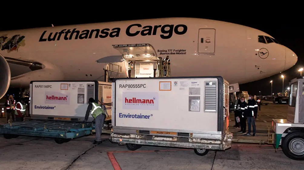 El primer cargamento aterrizó 6.55 de la mañana en el vuelo LH 510 de la empresa Lufthansa, mientras que para las 19.10 está programado el arribo del AR1073 de Aerolíneas Argentinas, con otras 1.440.000 dosis.