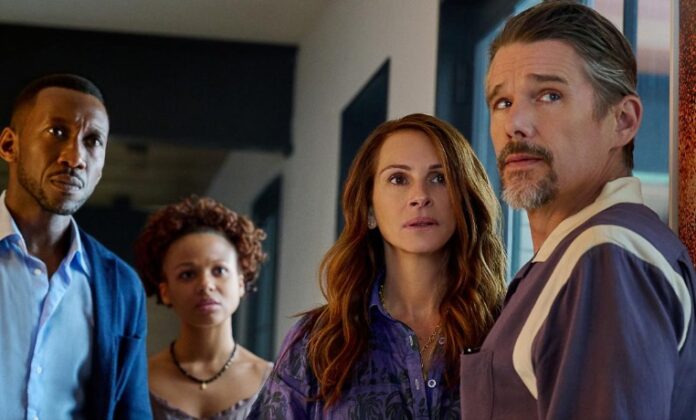 “Dejar el mundo atrás”, anticipado thriller apocalíptico del cineasta Sam Esmail con los protagónicos de los ganadores del Oscar Julia Roberts y Mahershala Ali, desembarcó este viernes en la plataforma de streaming Netflix con su perturbadora historia sobre el inesperado encuentro entre dos familias que deberán prepararse para un potencial cataclismo a raíz de un ataque cibernético.