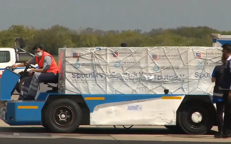 Un avión de Aerolíneas Argentinas proveniente de Moscú aterrizó a las 14.21 en el aeropuerto de Ezeiza con un cargamento de 330 mil dosis 1 de la vacuna Sputnik V contra el coronavirus.