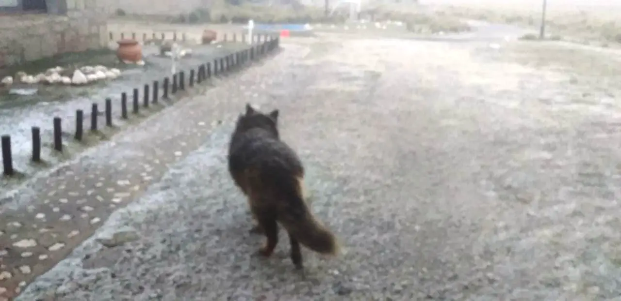 En la Posta comenzaron a caer copos de nieve en horas de la tarde dejando un hermoso paisaje en la zona serrana.