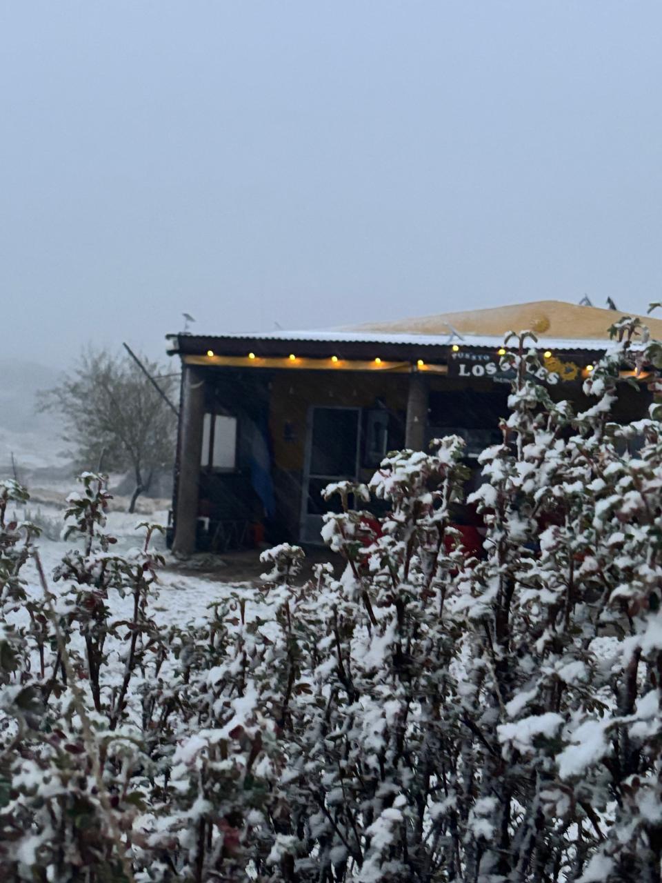 “Son las 9 de la mañana y sigue nevando copiosamente”, contó Erica, mientras el paisaje ya mostraba un manto blanco cubriendo completamente el suelo. La nevada comenzó durante la madrugada y fue ganando intensidad con el correr de las horas, en sintonía con el ingreso del frente polar que afecta gran parte del territorio provincial. La temperatura en el lugar es de 4 grados bajo cero.