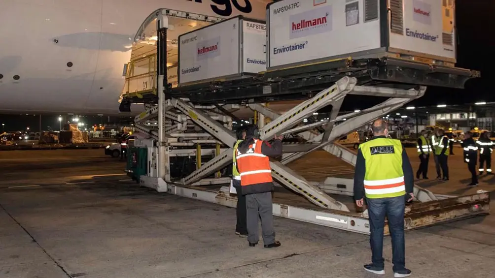 Las cajas de las vacunas producidas por el «China National Pharmaceutical Group Corp» son empacadas a su vez en contenedores denominados «envirotainers» que, de acuerdo a la estricta indicación del laboratorio, solo pueden ser transportados en el área de bodega de los aviones, según se informó.
