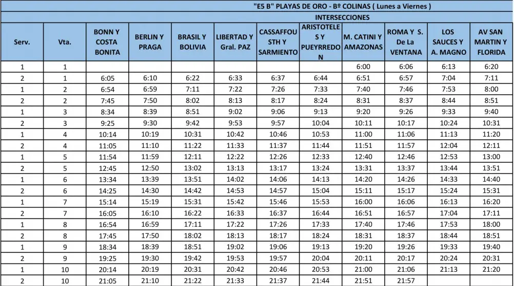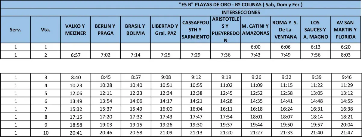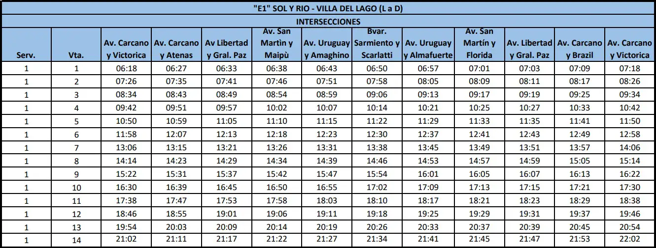 Recorrido E1: SOL Y RIO – VILLA DEL LAGO