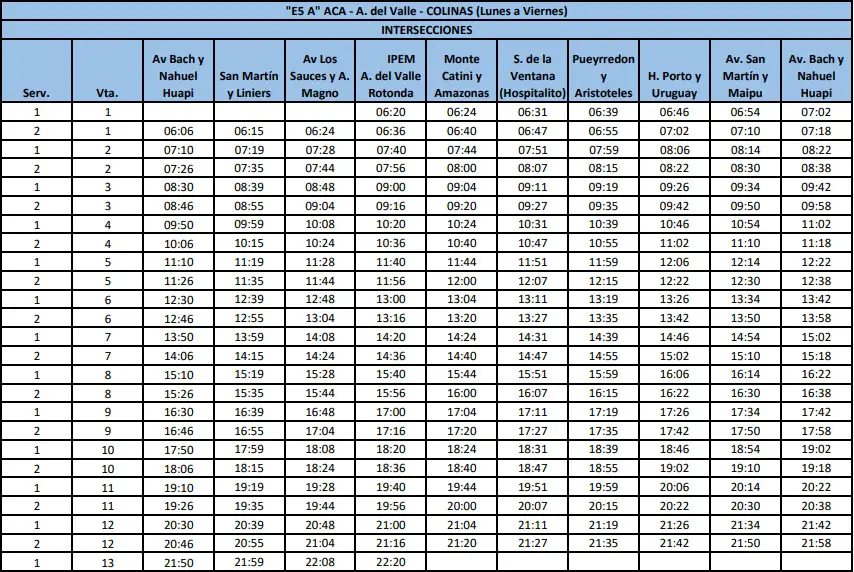 Recorrido»E5 A» ACA – A. del Valle – COLINAS
