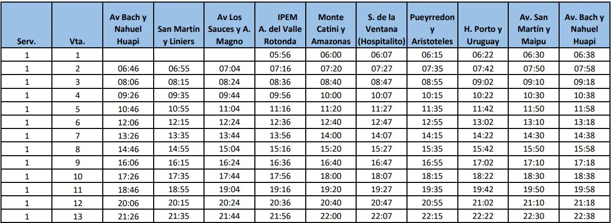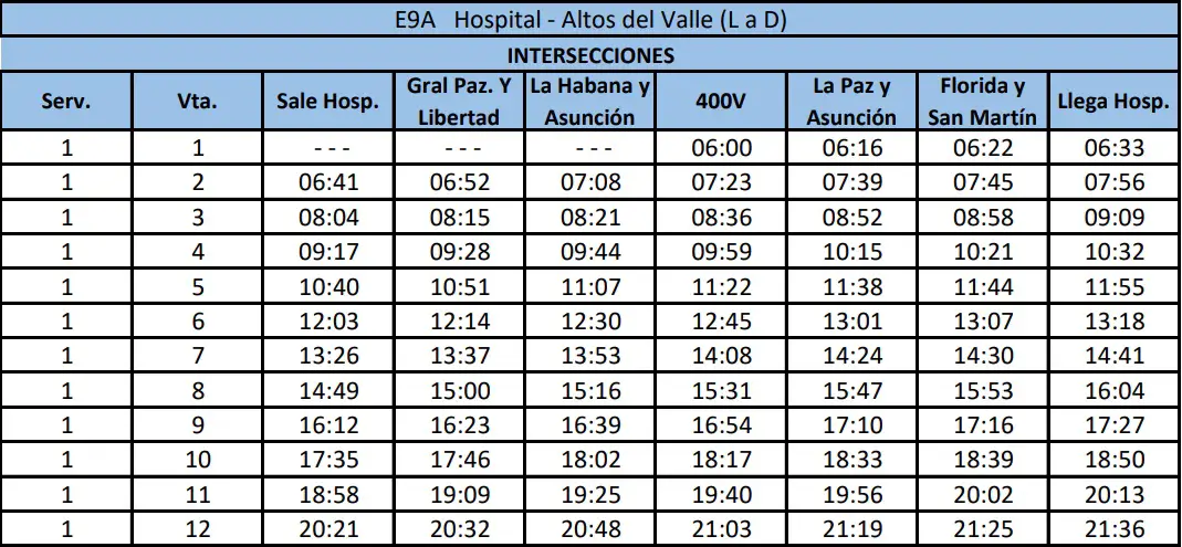 Recorrido «E9 A» Hospital – Altos del Valle