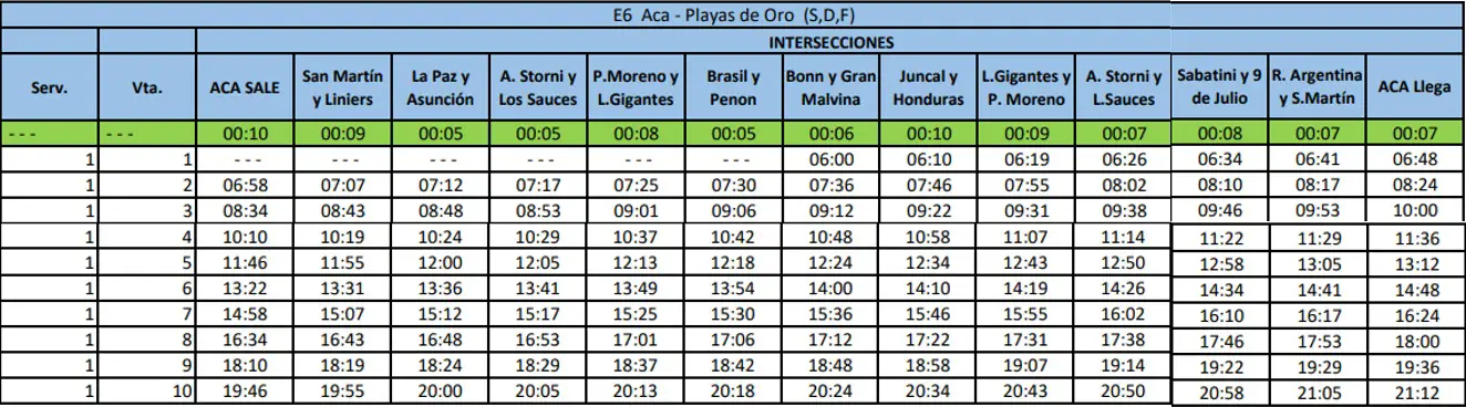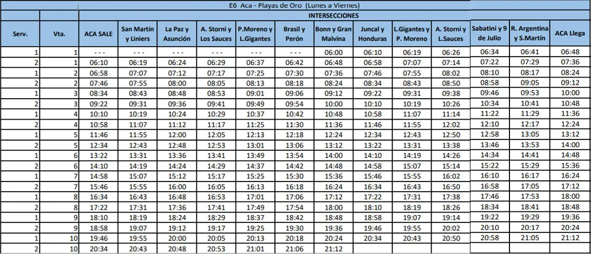 Recorrido «E6»: Aca – Playas de Oro
