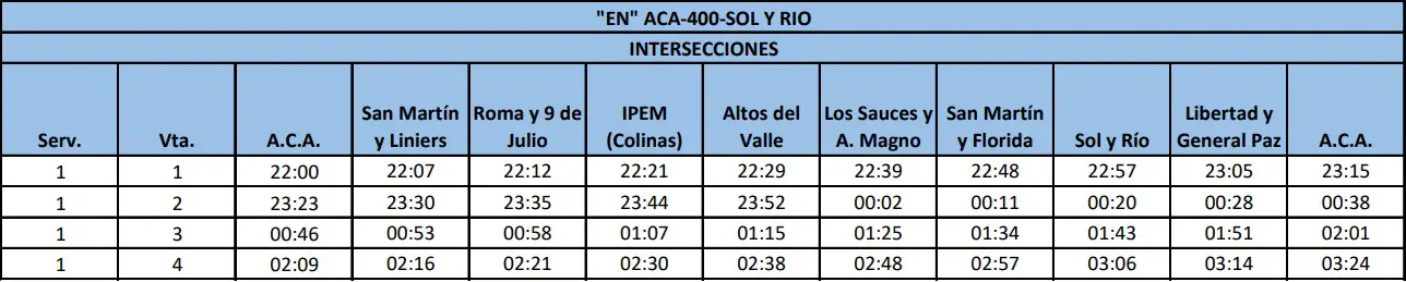 Recorrido EN: ACA-400-SOL Y RIO